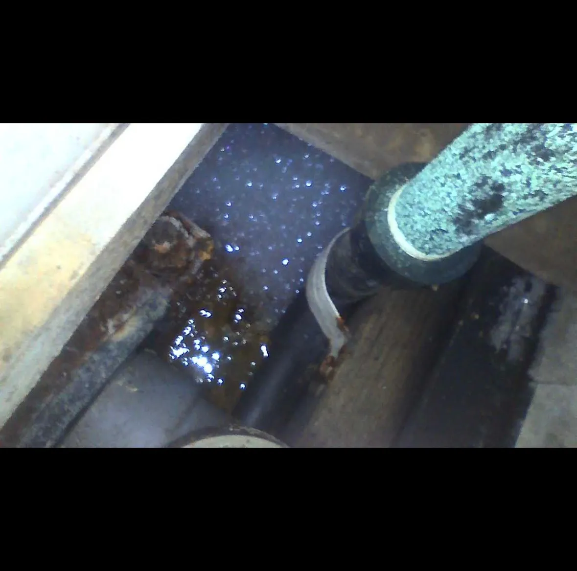 ファイバースコープ調査: 壁や天井に小さな穴を開け、細長い内視鏡カメラ(ファイバースコープ)を差し込んで内部の様子を直接確認します。普段は見えない壁の裏側やコンセントボックス内部にカメラを潜らせることで、石膏ボードの裏に広がるカビや断熱材のカビ汚染を目で見て確認できるのです。実際、押入れ奥の壁に穴をあけてファイバースコープで覗いたところ、石膏ボード裏一面に灰緑色のカビ斑点が無数に広がっており、含水率測定器が23%を示したケースもあります(※木材の乾燥状態の安全域は15%以下なので23%はかなり湿った状態です)。このようにファイバースコープ調査によって隠れたカビの可視化が可能になります。