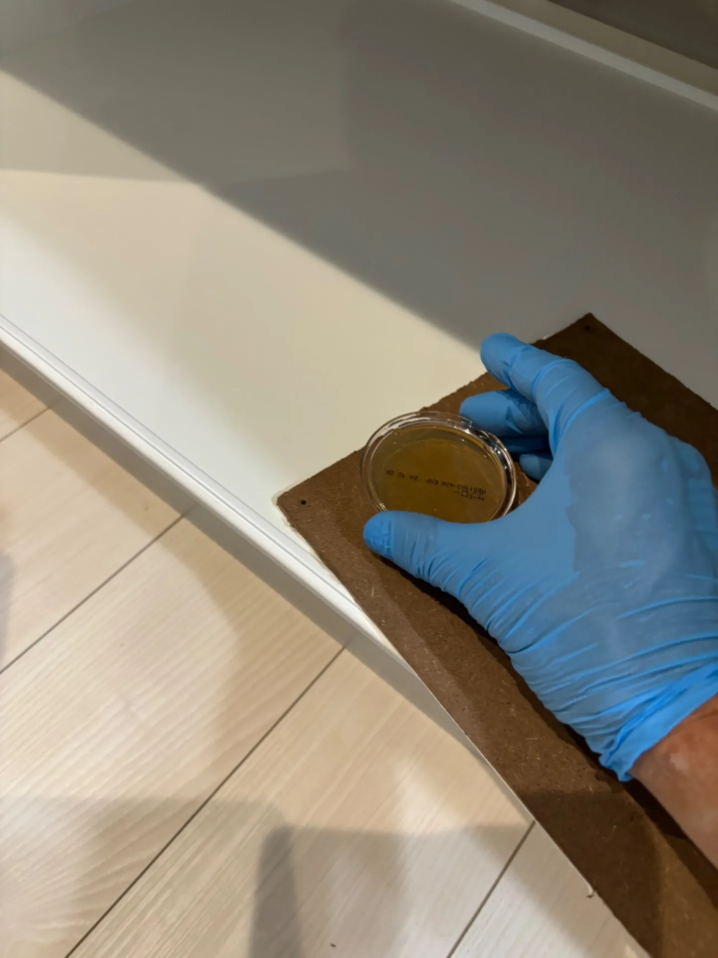 落下菌検査: 室内の空気中に漂うカビ(胞子)の量を調べるための検査です。方法はシンプルで、室内に培養用の寒天培地(シャーレ)を一定時間開放しておくだけ。空気中のカビや細菌が自然にその培地に落下・付着するのを待ち、後で培養してコロニー(菌の集落)の数を数えます。この落下菌検査によって、「部屋の空気中にどれくらいカビ胞子が存在するか」「どの場所で多くの胞子が落下しているか」がわかります。例えばコンセント付近の空気中に落下する胞子数が多ければ、まさに壁内カビがその周辺で繁殖している可能性が高い、といった推測が立てられるのです。※必要に応じて、空気中の浮遊菌を専用機械で吸引して測定する空中浮遊菌検査を行うこともあります。