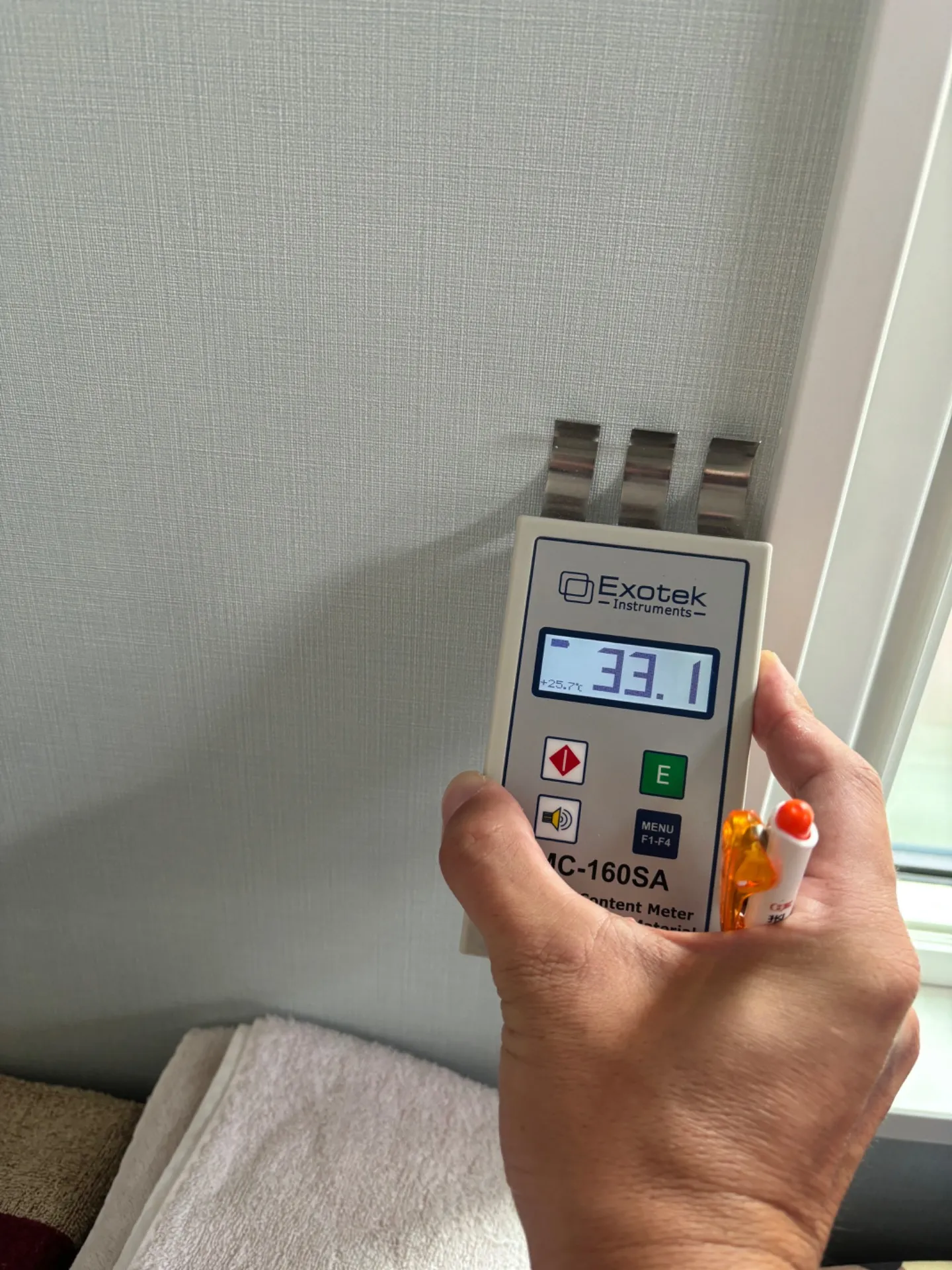 含水率測定: 含水率計という専用機器を使い、壁や床下材にどれくらい水分が含まれているかを測定します。壁内結露や漏水によって建材が湿っていないか数値で把握できるため、「壁の中が乾燥しているかジメジメしているか」が一目瞭然です。カビは湿度70%以上の環境で活発に繁殖すると言われますが、含水率測定によって壁内の湿気レベルをチェックすることで、カビ発生源や水分経路を特定する手がかりになります。先述のファイバースコープ調査と組み合わせて行えば、カビの広がり具合と湿気の度合いを同時に確認できるので非常に有効です。