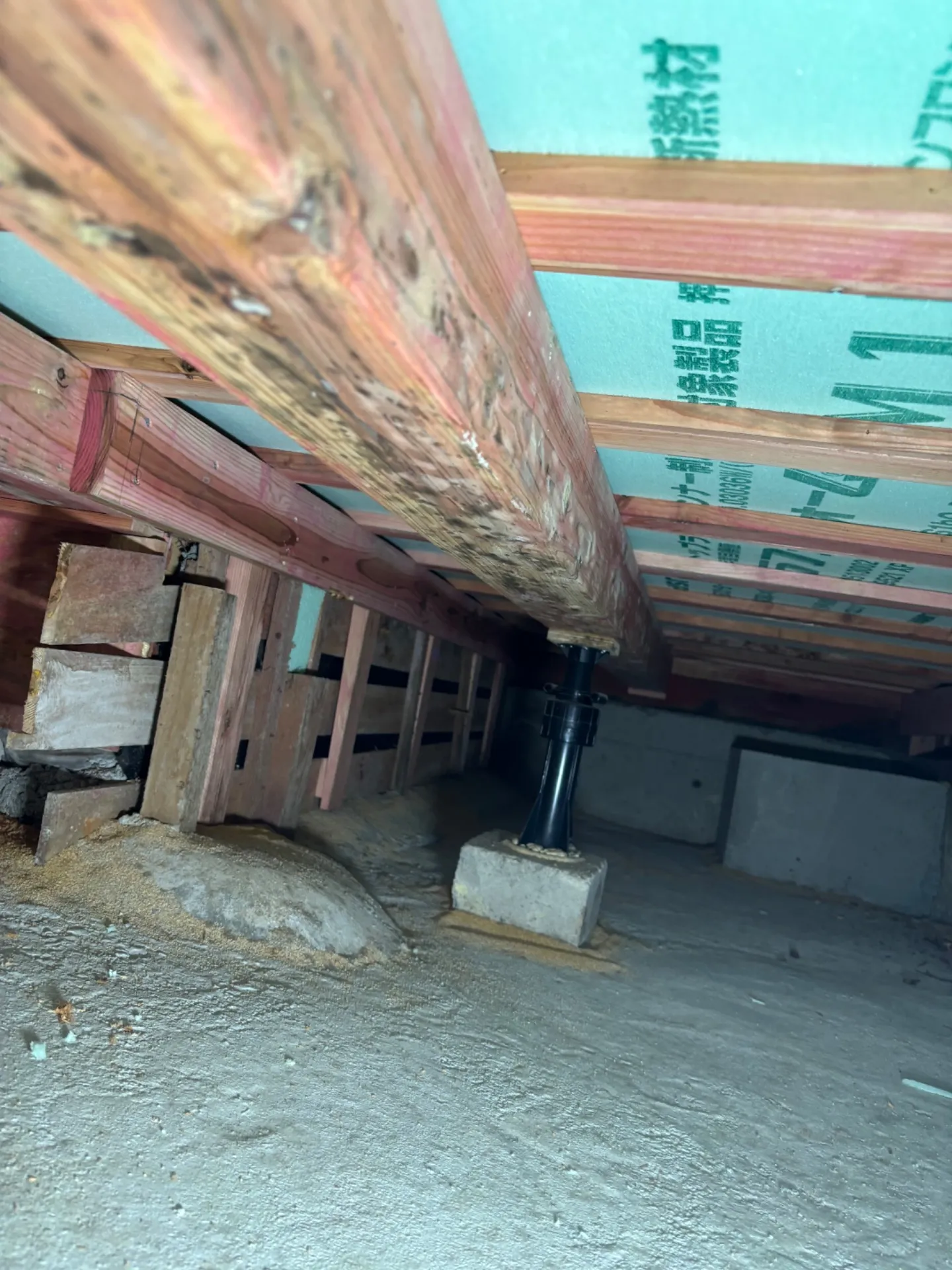 5.床下・天井裏など自力で見えない場所のカビ:床下換気口から白カビが見える、天井にシミが出ている等は、自分で確認・除去が難しい場所です。無理に床下にもぐったり高所作業をするのは危険ですし、不十分な処置ではカビが残ってしまいます。プロなら専用機材で安全かつ確実に対処可能です。