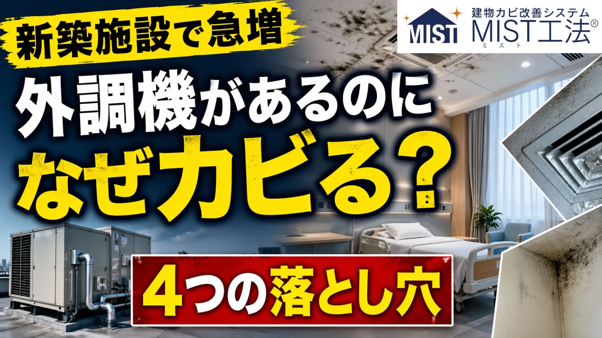 「最新の空調設備(外調機)を導入して建てた新築のホテルなのに、オープン直後から客室の壁紙にカビが生えてきた!」 「病院の新棟で、換気は完璧なはずなのに、なぜか天井裏からカビの悪臭がする……」 「外調機(外気処理空調機)を入れているから、換気も除湿も完璧にできているはずでは!?」